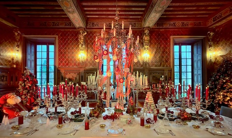Après les jardins, venez-vous réchauffer dans le château, où une ambiance de Noël vous attend. Cette année 2025, de nouvelles décorations vous transporteront dans une atmosphère chaleureuse et festive. Dans la grande salle à manger, par exemple, c'est un Noël gourmand avec la majestueuse table de fête qui est dressée. Prenez le temps de découvrir les décorations thématiques de chaque pièce.