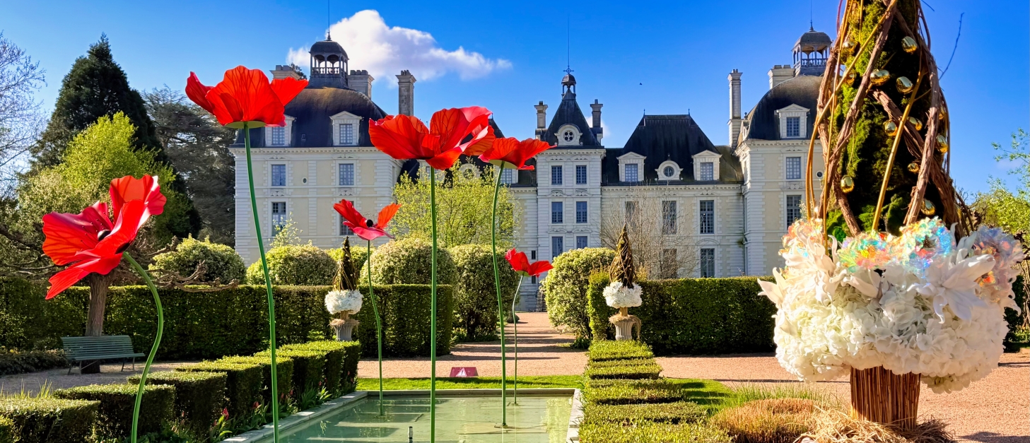 Le long du ruban de tulipes, de monumentales tulipes s'élèvent jusqu'à 4,5 mètres de haut. Plus loin, des alliums et des coquelicots géants enchantent les pelouses de l'Orangerie et le jardin des apprentis.