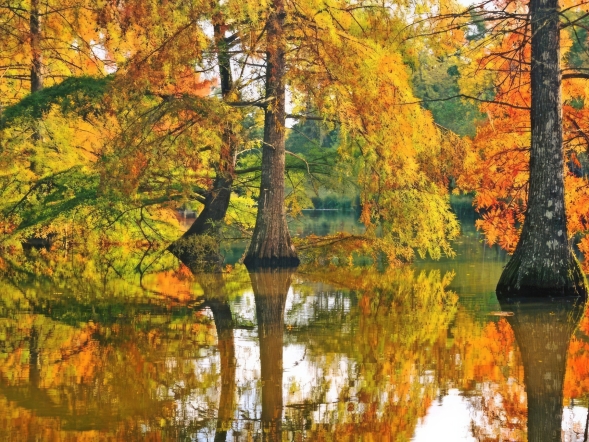 Le parc prend des teintes flamboyantes et les cyprès chauves deviennent mordorés