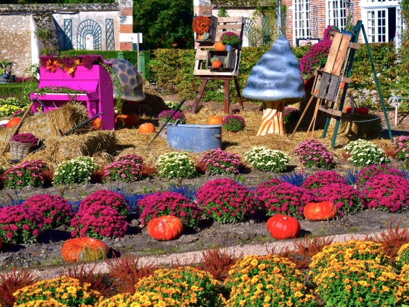 En sortant du château, promenez-vous aussi dans le jardin des apprentis : autour du bassin et jusqu'à l'Orangerie des scénographies qui se renouvellent tous les ans célèbrent l'automne.