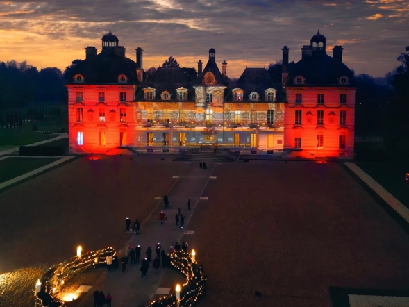 Dès la tombée de la nuit, les illuminations du parc et de la façade prolongent la féerie jusque dans la soirée : le domaine ouvre ses portes jusqu’à 20h30 pour une expérience unique !