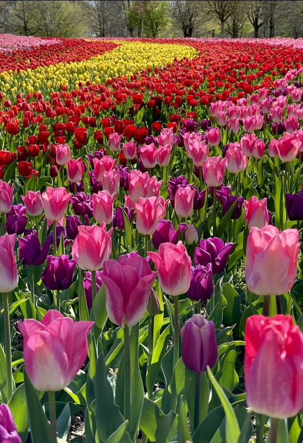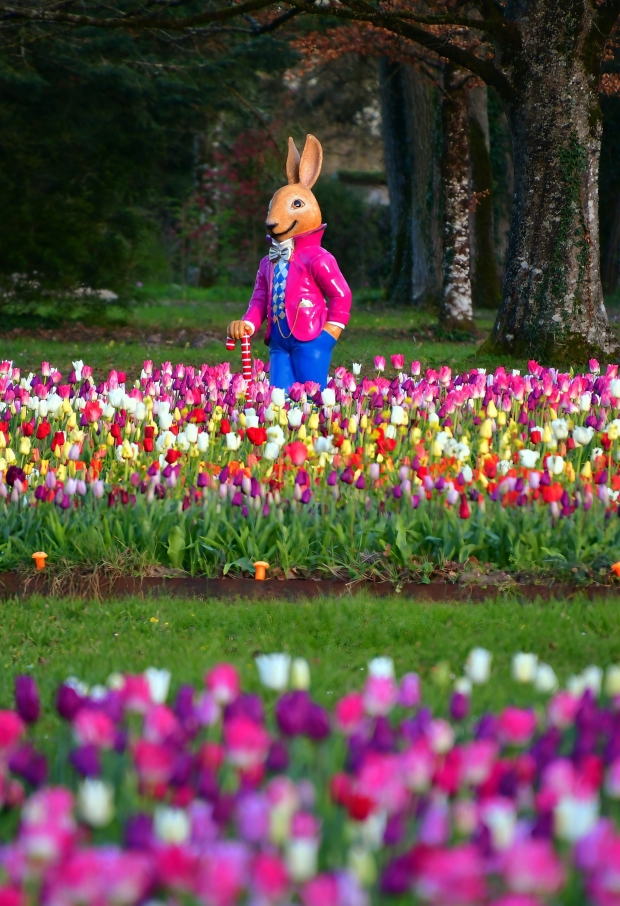 Chaque année, le spectacle floral est exceptionnel : un demi-million de tulipes s’épanouit dans les jardins, formant deux rubans de 250m de long qui serpentent jusqu'au château. Ce tapis multicolore vous émerveillera à n'en pas douter !