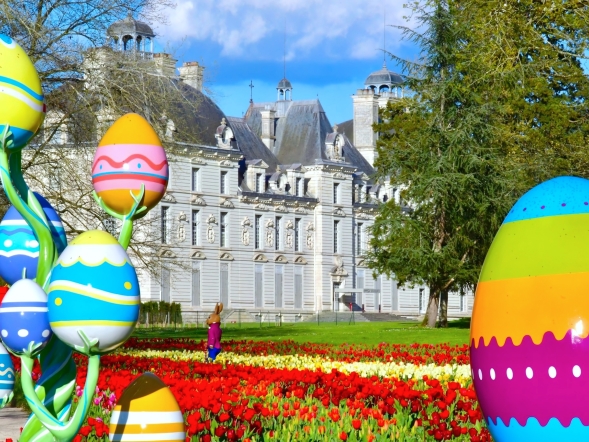 Le printemps, c'est aussi Pâques ! Le château et ses jardins se parent de décorations festives et colorées. Œufs géants, lapins malicieux et compositions florales printanières créent une ambiance joyeuse et familiale.