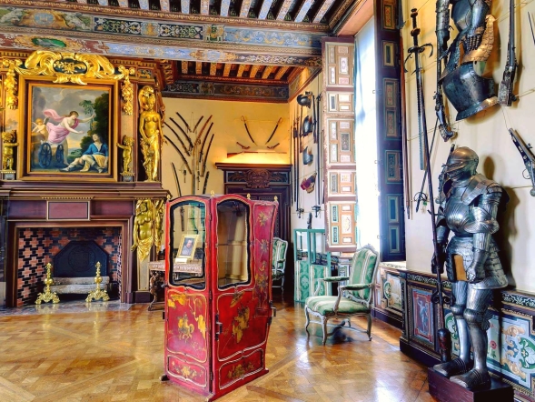 Le château présente des pièces de mobilier uniques et des aménagements intérieurs remarquablement conservés.