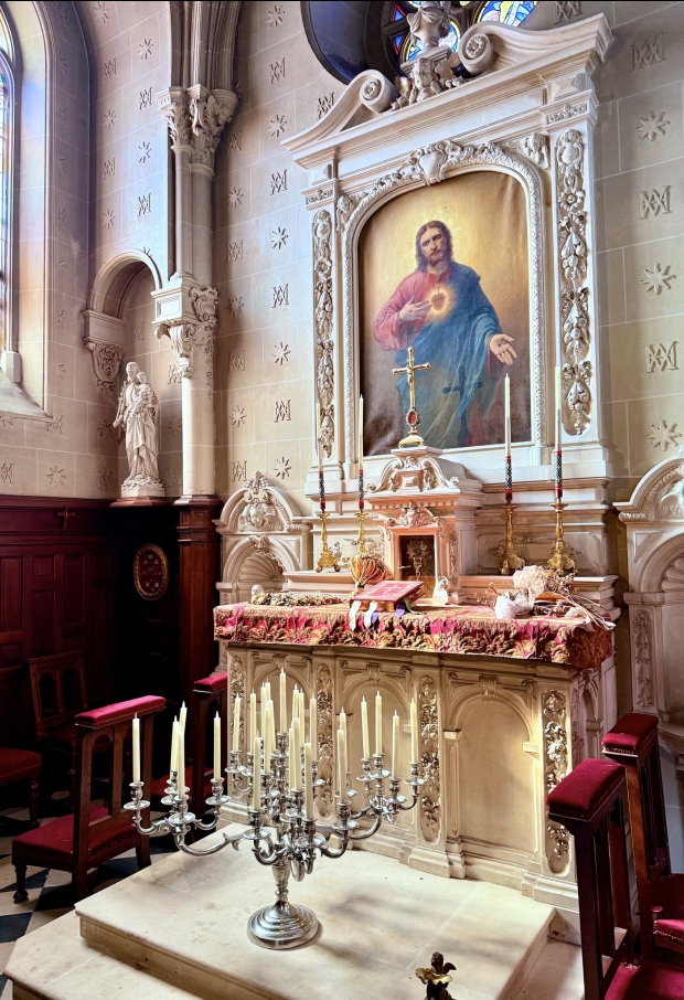 Au dernier palier du château, se cache la chapelle, ouverte à la visite depuis 2014. Bien que ses voûtes en ogive remontent au XVIIe siècle, elle n’est achevée qu’au XIXe siècle.