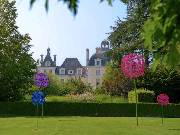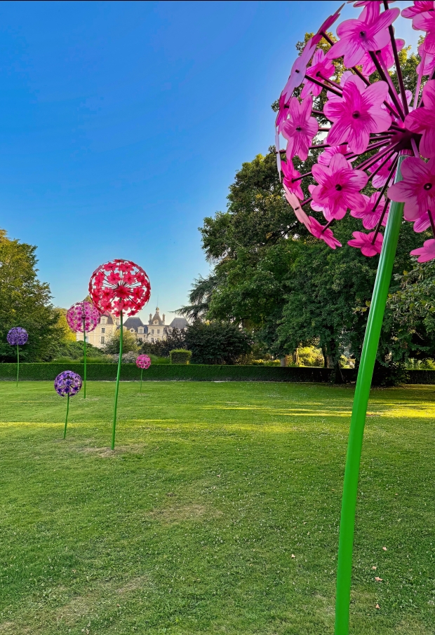 Depuis août 2025, de monumentales sculptures en forme d'alliums enchantent les pelouses de l'Orangerie du château et vous entrainent dans un univers coloré.