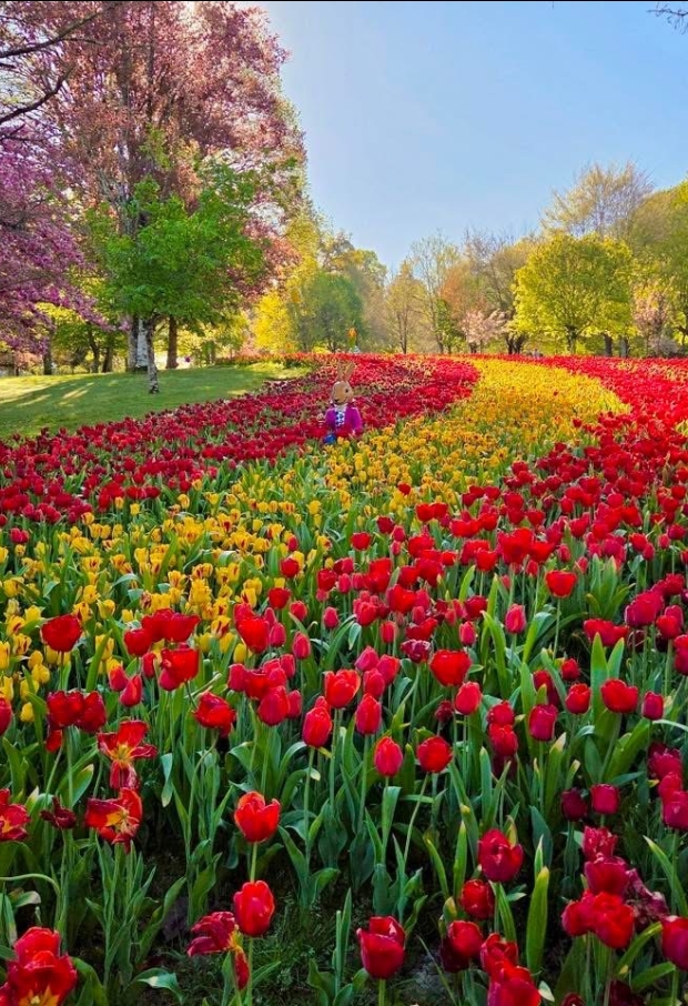 Cette année, plus de 500 000 bulbes ont plantés à l'automne, notamment pour former non pas un, mais deux immenses rubans de tulipes. Emerveillement garanti !