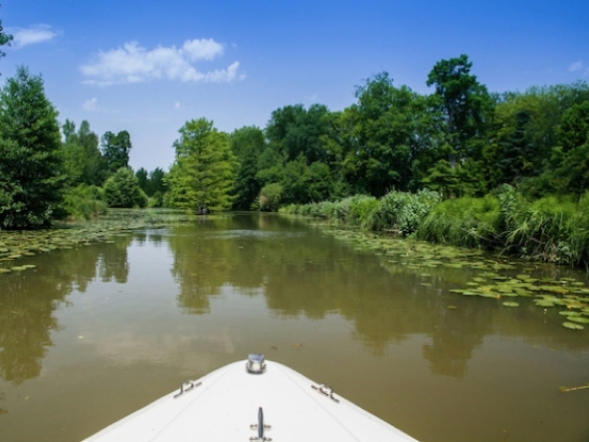 Un arrêt permet d'apprécier l'allée des 157 cèdres. Puis, à bord d'un bateau électrique, on sillone le canal et la rivière où poussent, les pieds dans l'eau, des cyprès chauves de Louisiane.