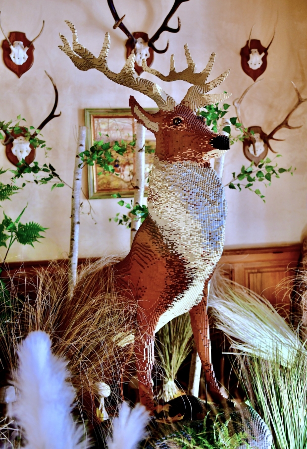 Dans les pièces du château et dans la salle des Trophées, des pièces de mobilier, des animaux, des oeuvres d'art et même des maquettes de l'actuel et de l'ancien château ont été réalisés en briques Lego. A vous de les retrouver : il y en a 13 en tout ! Certains se fondent si bien dans l'ameublement des pièces, à côté de leur modèle, qu'il faut un moment pour les distinguer !