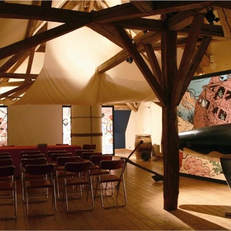 Située à la fin de l’exposition « Les Secrets de Moulinsart » (dans les communs du Château).